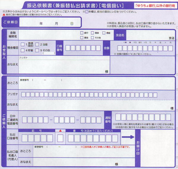 ネットバンキングの普及や、決済・割り勘アプリの登場などによる送金手段の多様化で、最近は記入する機会がほとんどないと思いますが、銀行窓口の依頼書はOCR用の帳票です。